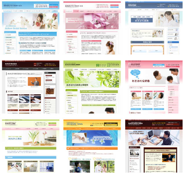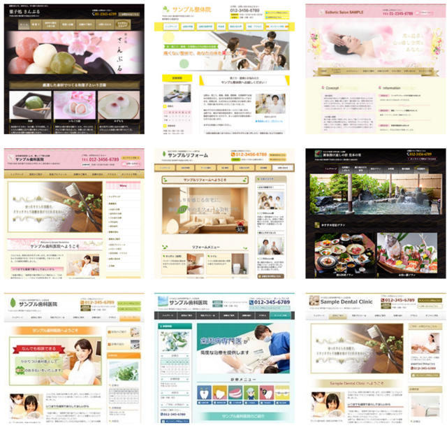 各パターンに業種別の名前をお付けしているのは、初期設定するデザイン(見た目)やコンテンツ(内容)を分かりやすく表現するためです。